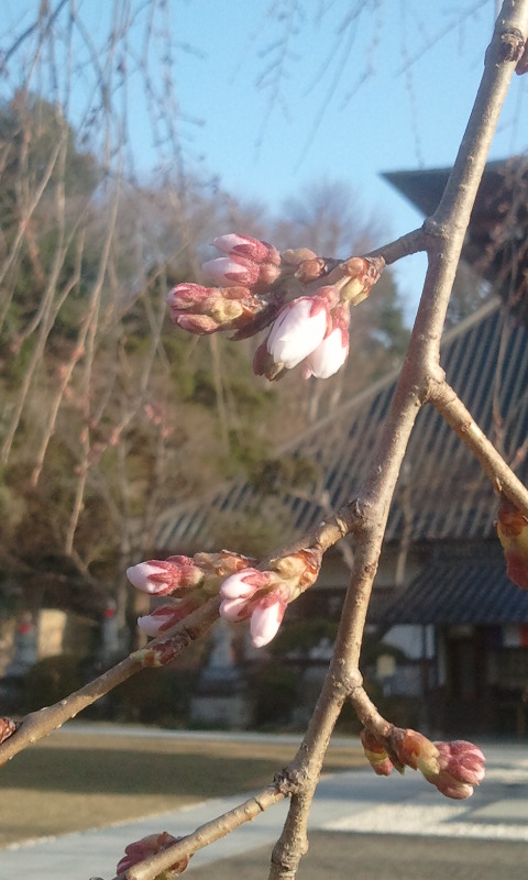 長谷観音の桜の開花は、、、もう少しお待ちください。 いま、こんなかんじです。(4月1日撮影) 枝垂れ桜の蕾が、少し開き始めましたね。 桜も観音さまも、皆様のお参りをお待ちしています。 蕾の桜にも会いに来てくださいね。 三部咲き、五部咲き、満開の桜、そして、散り際、桜吹雪、葉桜・・・。 みんなそれぞれに風情があります。 観音の大悲の桜咲きにけり(子規)